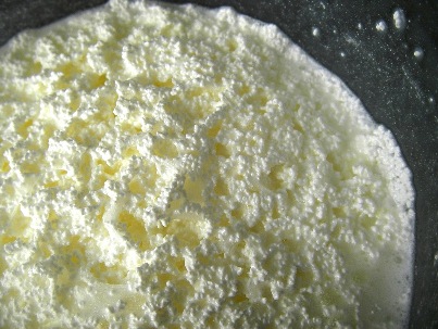 牛乳が分離してバターが浮くべし。